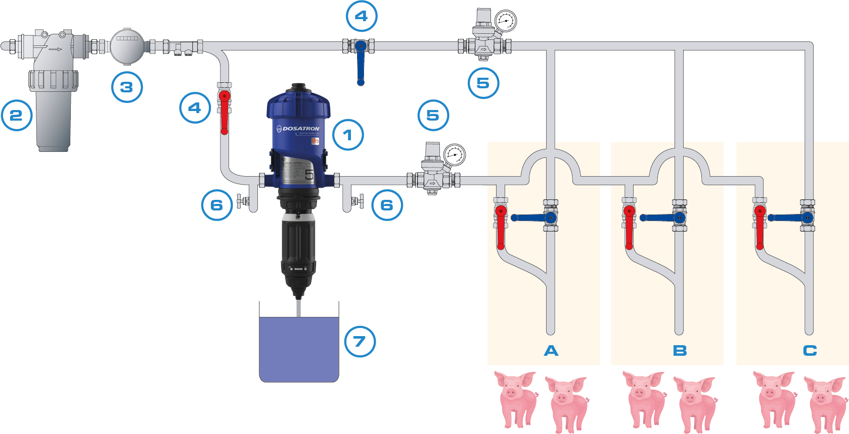 The Dosatron technology will ensures that animals have equal access to the right amount of vaccine at all times and that the vaccine solution is evenly distributed at each drinker.