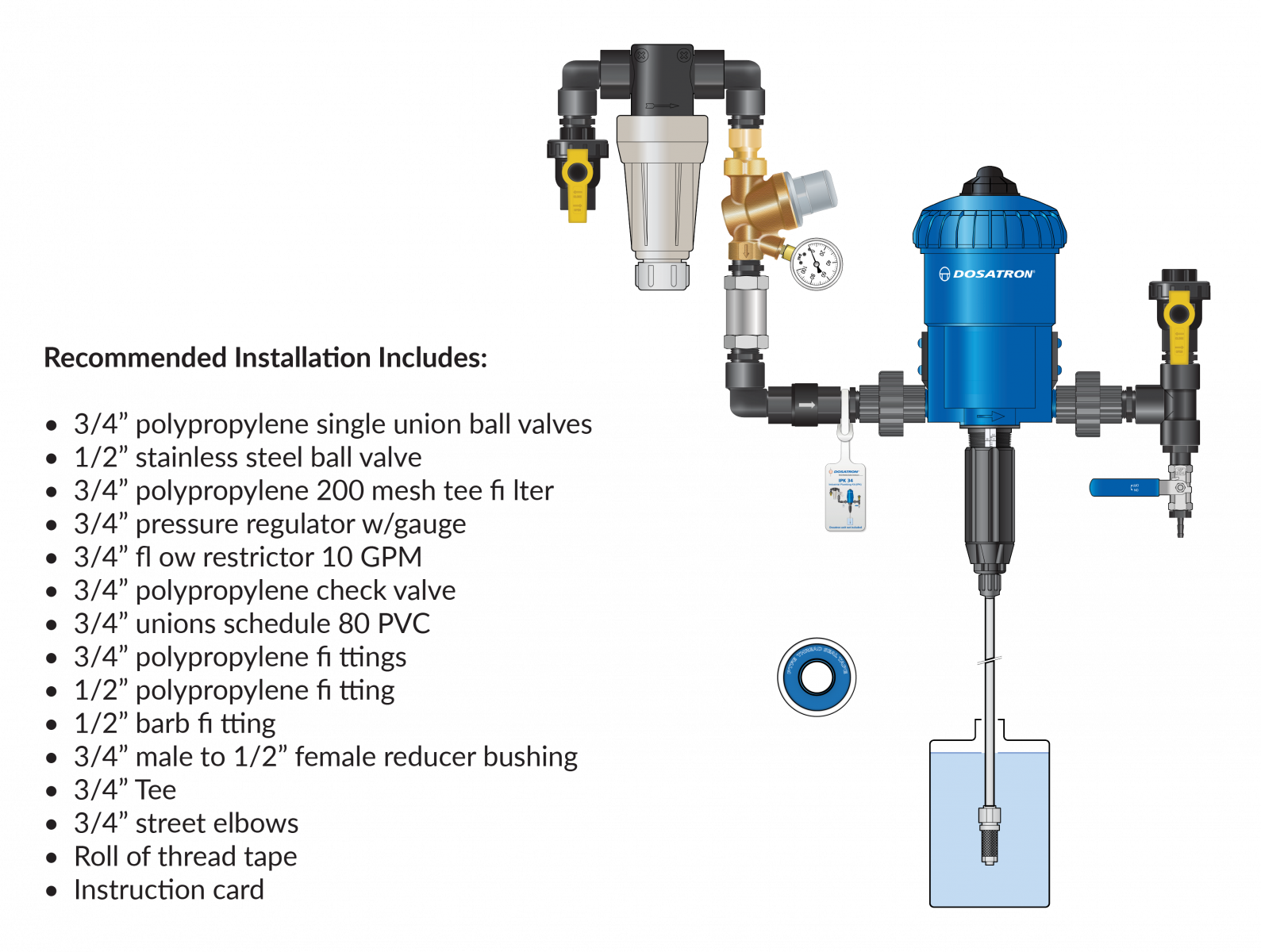 Below are the common ways to install and use (treatment application) your Dosatron Chemical Injector.