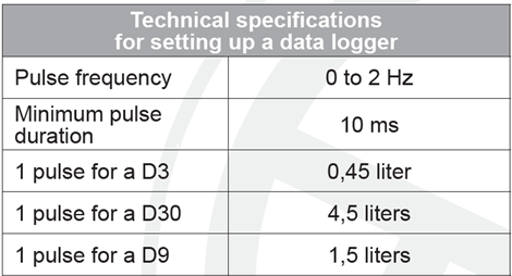Reed switch with sensor and cable for transmitting dry-contact information to a datalogger (not supplied). An engine cycle is associated with a given displacement volume, so it is possible to determine its volume and/or flow rate.